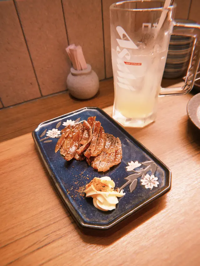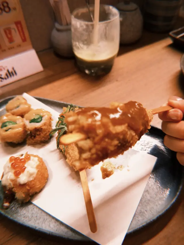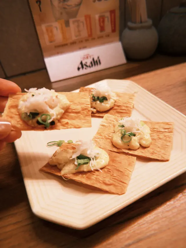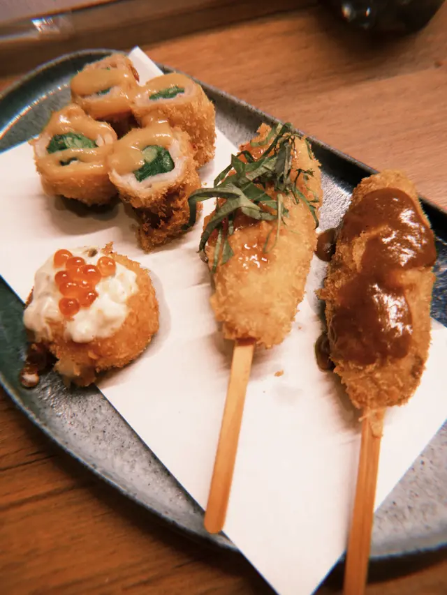 送酒小食嗌咗蟹肉鱈魚片,雞泡魚片,串燒方面我覺得啲選擇都好特別,韭菜豚肉片,炸咖喱飯,紫蘇梅醬軟骨雞肉,沙律醬炸帶子,每一件份量都好足超抵食💕