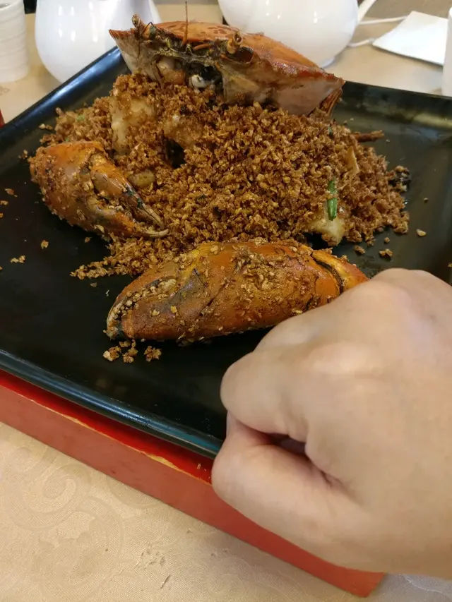 來到專門店當然要點招牌避風塘炒蟹來食,上檯時已傳來陣陣蒜香,都急不及待帶上手套拆開蟹殼咬下去,蟹身飽滿,肉質扎實鮮味,可見十分新鮮。加上大量炸蒜和辣椒,味道微辣又惹味,口水不斷在流。