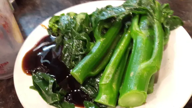 今次, 我叫了牛膀, 牛腸拼魚蛋河 + 芥蘭。