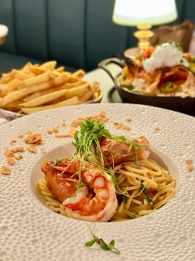 意粉口感剛好,虎蝦新鮮彈牙,每條意麵都充滿蒜香,而且帶點微辣,越吃越開胃。