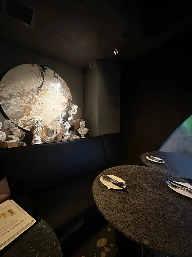 餐廳採用暗黑型格設計,以黑、白及橙色為主調,營造出現代時尚又雅緻嘅氛圍,搭配昏暗嘅燈光,頗有情調。餐廳主打意日Fusion菜式,糅合傳統意大利菜及日式風味。