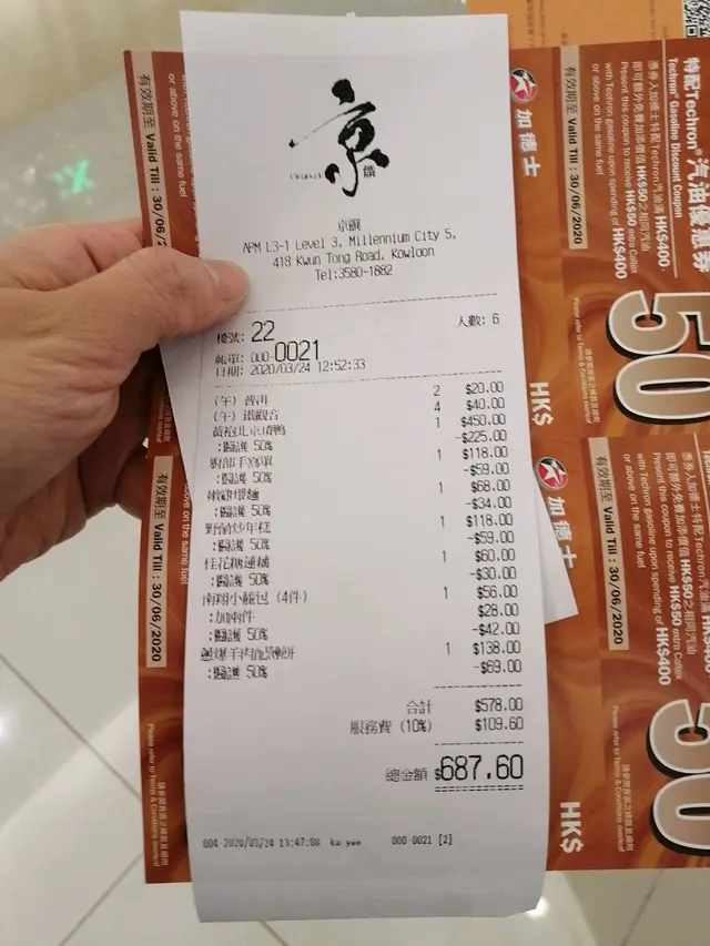 醫護同行主餐牌半價 CoralShumLevel 42020-03-283K views Follow 疫情下, 午市生意不多, 但枱與枱之間十分擠壓,服務態度不錯,上菜速度尚可接受。黃袍北京填鴨$450 賣相排列整齊, 肥鴨一隻, 皮脆肉香, 配山楂條酸甜更開胃2黃袍北京填鴨$450嫩雞煨面$68 上海菜必食, 每人都分到一碗, 但今次就只見菜不見雞肉, 可惜嫩雞煨麵$68野箘炒年糕$118 份量多, 有點過咸, 年糕無痴住一大舊, 不錯野箘炒年糕$118桂花糖蓮藕$60 調味不錯, 唔痴牙, 食到到唔停口。南翔小籠包 (4件)$56, 18摺, 充滿湯汁, 算得上皮薄餡靚南翔小籠包$56蒽爆羊肉配薄餅 $138 羊羶味不算濃, 蔥香味甜蔥爆羊肉配薄餅$138醫護同行半價, 需出示醫管職員證。結賬700元有找....The above review is the personal opinion of a user which does not represent OpenRice's point of view.LikeShare醫護同行主餐牌半價 京饌 https://s.openrice.com/QrKT0b50u00Report Post Ratings3Taste4Decor3Service4Hygiene4ValueRecommended Dishes嫩雞煨麵$68野箘炒年糕$118南翔小籠包$56黃袍北京填鴨$450Date of Visit2020-03-24Dining MethodDine InType of MealLunch