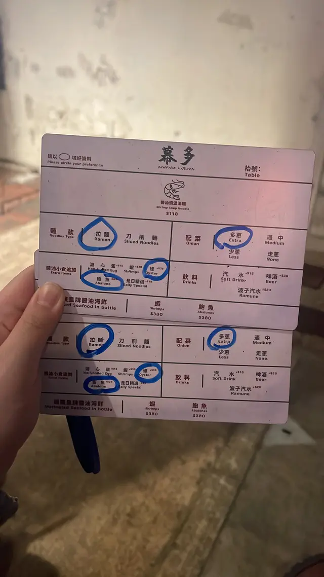 醬油海鮮比拉麵吸引 celine2233Level 32025-04-18657 views Follow 星期六6點開始排 7點幾終於入到座一路排隊既時候 店員會keep住派水同酒好貼心我地叫左蠔同鮑魚餐廳話今日既蠔比較細隻 所以補多隻比我地呢個位再feel到佢地對質素好有要求2講下個醬油海鮮先蠔同鮑魚都勁大隻蠔食落好甜好鮮個鮑魚就好彈牙而且每款都係三十幾蚊 都係好抵食好欣賞佢個海鮮 另外拉麵就一般般蝦味唔算濃 湯底味道淡左啲湯底比較似擔擔面 有花生醬既味道而且佢蝦油都偏重花椒面而唔係重蝦味所以有少少失望不過料就都幾足成碗有好多櫻花蝦不過會果湯底要濃啲會更好The above review is the personal opinion of a user which does not represent OpenRice's point of view.LikeShare醬油海鮮比拉麵吸引 幕多 https://s.openrice.com/QrKT0xPyjW0Report Post Ratings4Taste4Decor5Service5Hygiene5ValueDining MethodDine In