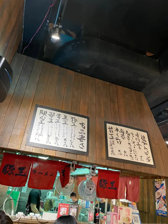 拉麵有五款,包括豚王(原味)黑王(墨魚汁)赤王(辣味)、翠王(芝士和羅勒汁)和期間限定。