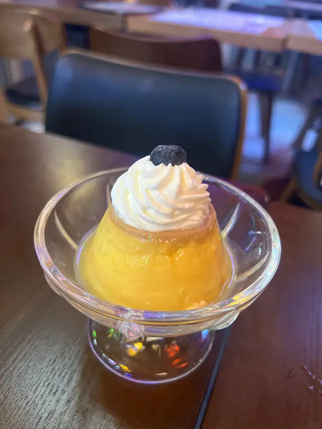 呢個甜品真係一眼就愛上!🍮 金黃透亮嘅布丁上面有忌廉同藍莓,賣相超精緻。布丁嘅質地介乎滑同韌之間,口感順滑又有嚼勁。上面嘅焦糖香甜不膩,加埋少少海鹽,甜中帶鹹好特別。忌廉清甜唔會太膩,藍莓嘅酸味中和晒甜度,整體平衡得好好