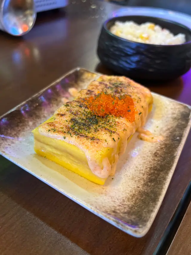 😮 金黃色嘅玉子燒上面鋪咗啲靚靚嘅明太子魚籽,再撒上少少海苔粉,賣相十分高級。蛋捲一啖咬落去,層次感十足 - 外脆內軟,明太子嘅鹹香同蛋嘅鮮甜完美融合。中間仲有層滑滑嘅芝士,拉絲效果超誇張!