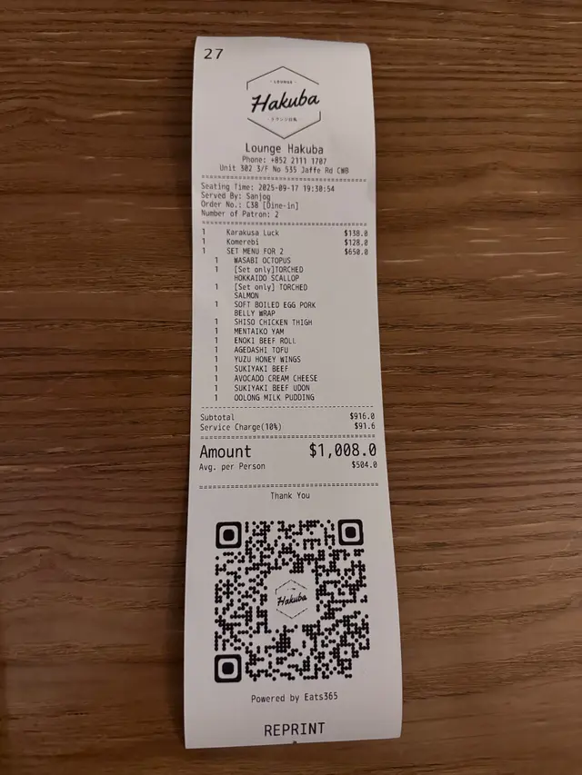 整體來說,Lounge Hakuba 不僅提供高品質的日式美食,還有創意十足的調酒和舒適的用餐環境,是在銅鑼灣尋找一個放鬆享受的好去處。無論是想品嚐地道的日式料理,還是享受一杯特色調酒,都能在這裡找到滿足。推薦給喜愛日式文化和精緻美食的朋友,一起來體驗一場味蕾的日式之旅吧!