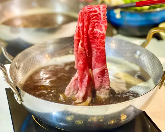 鹹中帶甜的壽喜燒湯汁濃味,與和牛絕配,非常下飯