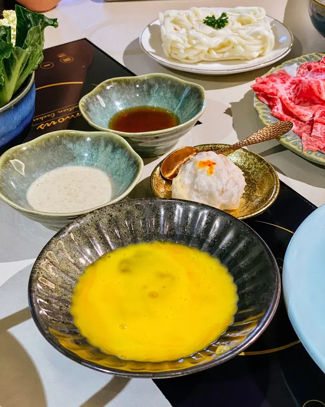 沾上日本蛋液能緩和濃厚的壽喜燒🥚