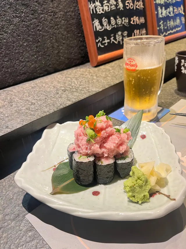 滿滿的吞拿魚腩加埋碎蔥鋪在壽司卷上 完全係吞拿魚山咁 魚腩的脂肪分佈均勻 入口即化