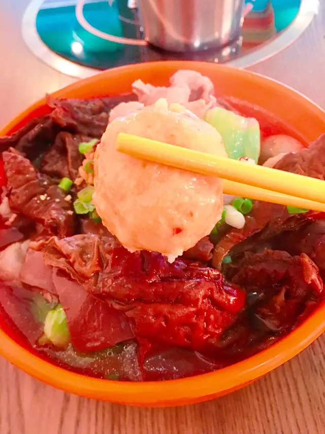 ,油脂分布平均;豬紅太正,食到停唔到口;果皮魚蛋