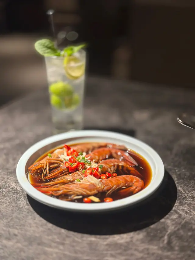 都未講前菜添~我地叫咗【醬油蝦】同埋【燒鵝肝多士】,醬油蝦好新鮮爽彈,鵝肝多士都係有店員幫手燒,將鵝肝同本菇一齊煎香,鵝肝煎得金黃焦脆得黎,本菇又吸收咗鵝肝啲油香,好邪惡!!