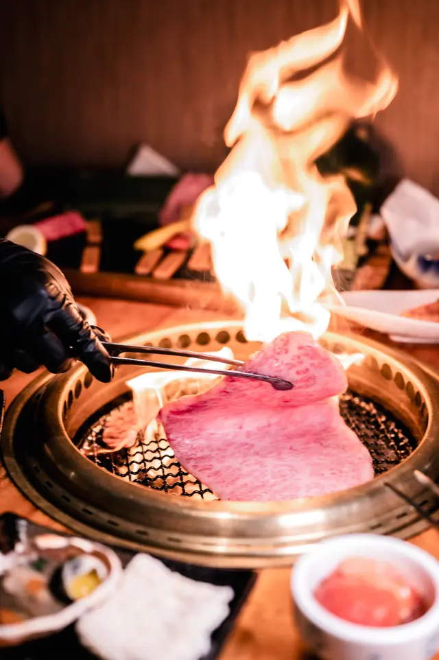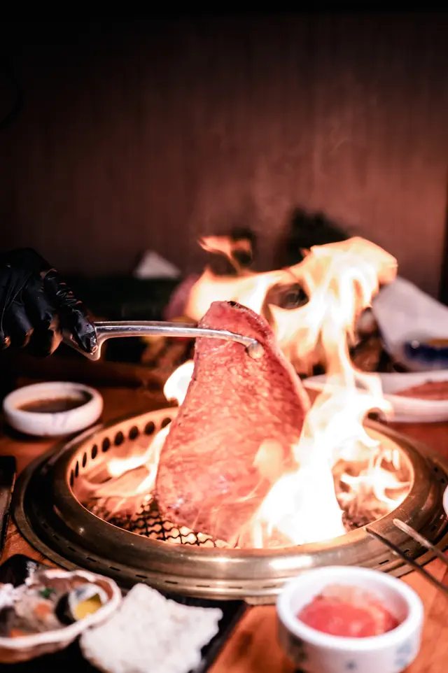西冷和壽喜燒兩款餐廳職員表示最好交由他們作專業處理,因為怕食客難於控制準繩的火喉。不出所料,燒西冷時火光紅紅,證明那油脂的厲害。