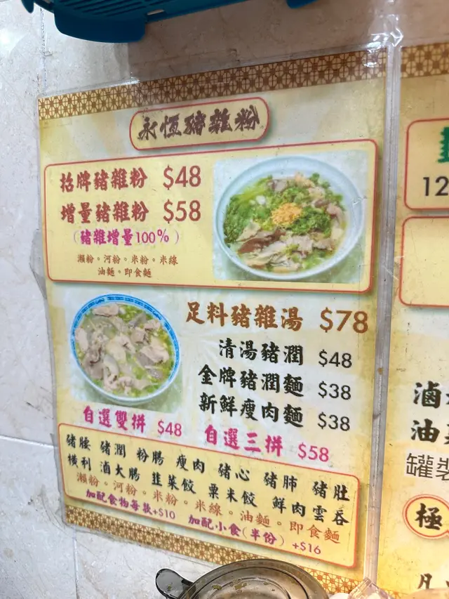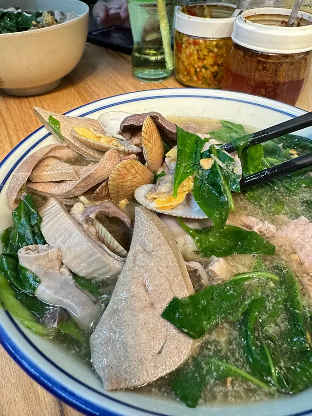 裏面有瘦肉、豬肺、豬肚、豬心、豬潤、粉腸,火候煮得幾好,唔會過熟硬晒,湯底超級甜,忍唔住攞隻大匙羹飲晒!份量都算多,好飽👍🏻👍🏻