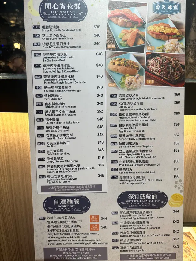 9:30 pm 先帶我去食飯,好多都開始收檔,最後搵到一間茶餐廳係有埋宵夜時段(10:30後開始)。