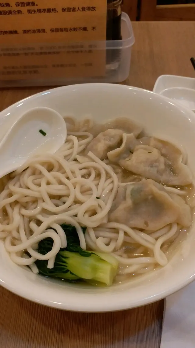 下雨天, 感覺有點寒冷 ,想吃一碗熱騰騰的拉麵,走到這家北京小店,一餐牌上各類型的水餃套餐現在優惠 85折,就嚟一碗海參三鮮水餃拉麵。