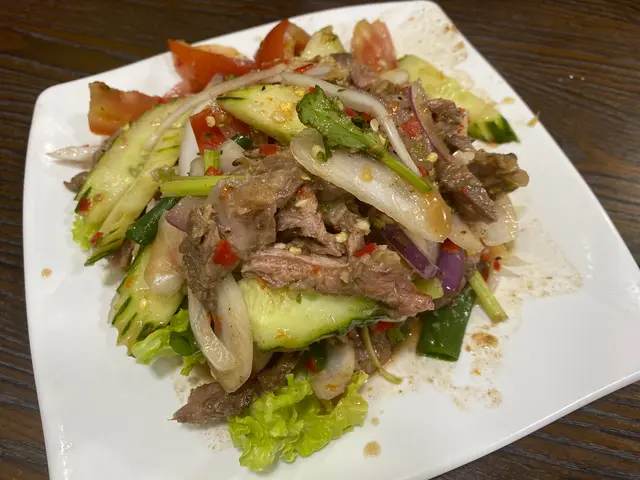 想食燒牛肉又想食燒豬頸肉 驚太多肉食唔晒就揀咗沙律 燒牛肉嘅份量比想像之中多好多 牛味濃 燒得香 又淋!沙律底就好多洋蔥芹菜蕃茄青瓜 撈左去辣辣地個汁超惹味!! 揀咗小辣不過都覺得越食越辣 但又好過癮🤪