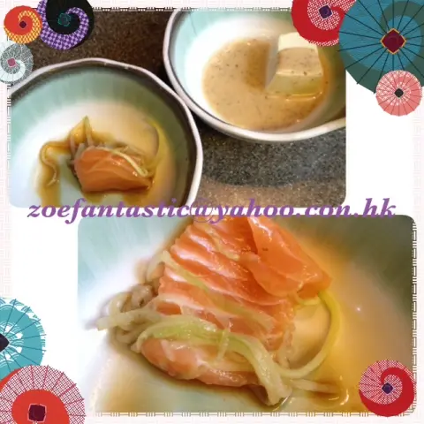 前菜 - 胡麻凍豆腐沙律、秘製三文魚卷沙律