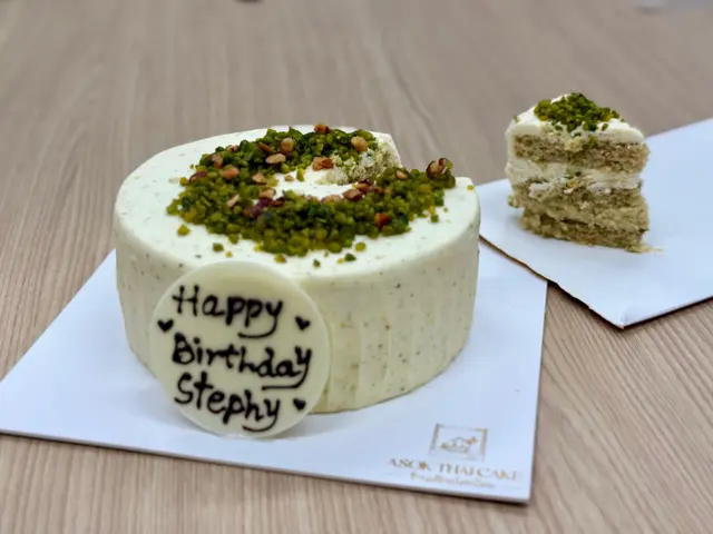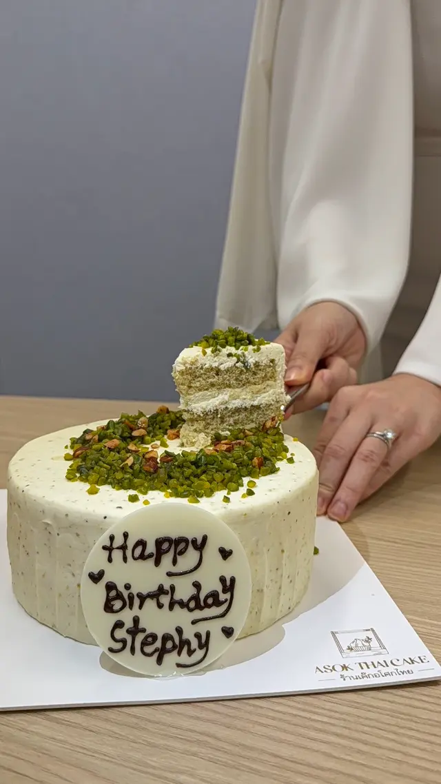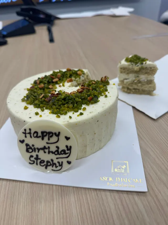 Asok Thai Cake開心果忌廉蛋糕🎂,好味喎,有驚喜喎,開心果碎碎好多,温柔嘅顏色好靚,影相打卡好有效果,海綿蛋糕配上唔太甜嘅忌廉,每一啖都有清新嘅開心果味,充滿層次感!。『開心果』蛋糕淨係個名都夠好意頭,用嚟慶祝生日啱晒啦!希望嚟緊呢一年每一日都開開心心!
