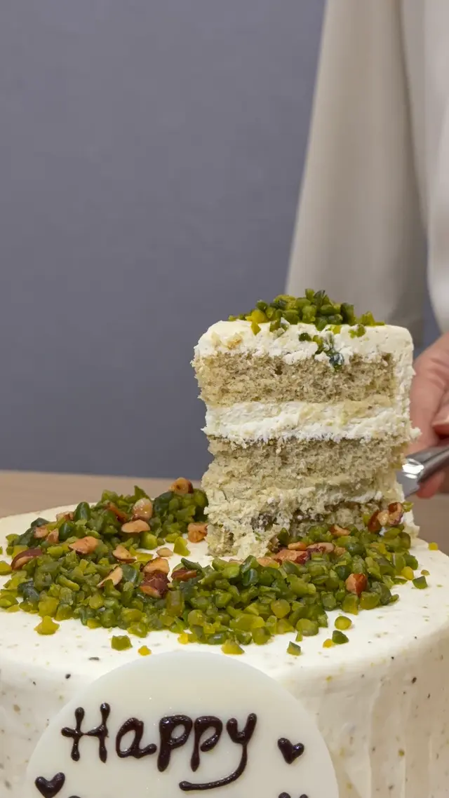 開心果真係近期大熱,個蛋糕幾好味喎,有驚喜喎,開心果碎碎鋪係蛋糕面好多,温柔嘅顏色好靚,影相打卡好有效果,海綿蛋糕配上唔太甜嘅忌廉,每一啖都有清新嘅開心果味,充滿層次感!感覺好輕盈,食完係冇罪惡感,唔肥膩唔會飽飽滯滯。『開心果』蛋糕淨係個名都夠好意頭,用嚟慶祝生日啱晒啦!希望嚟緊呢一年每一日都開開心心!食後感,8個人都滿意👍🏼,下次有朋友生日會再訂購呀!相信回頭率好高呀!去買蛋糕嗰陣呢,見到其他動物蛋糕都好吸引,下次買俾小朋友先。