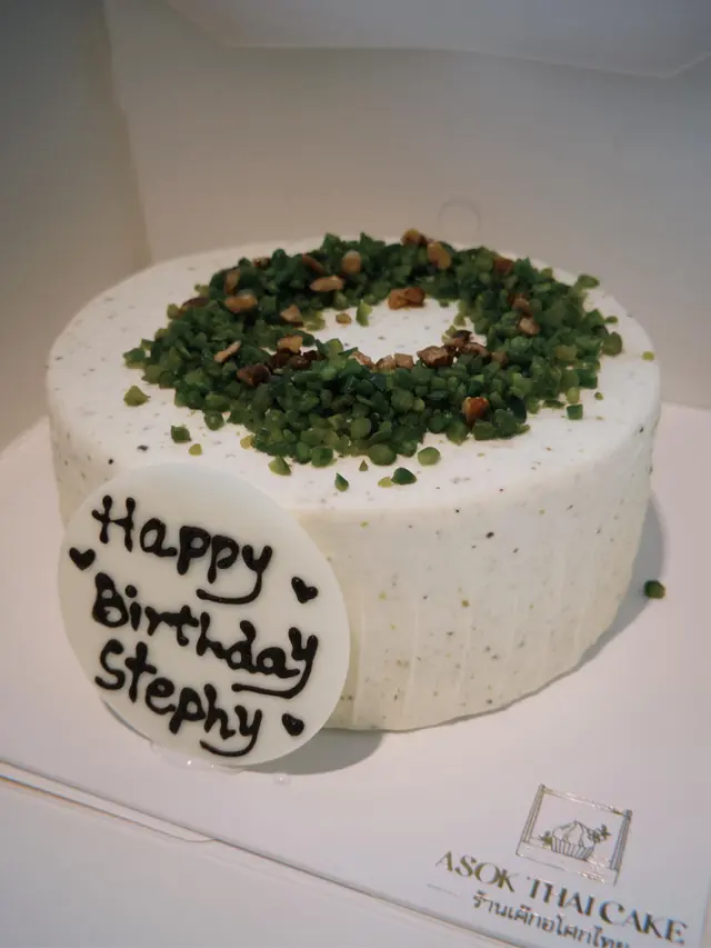 幫朋友慶祝生日,買左Asok Thai Cake 6 “ 開心果忌廉蛋糕🎂,預早訂定,加朱古力生日牌連寫名 +$20。