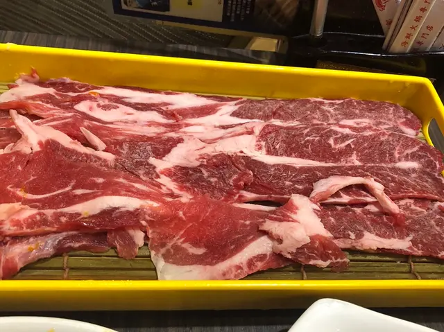 開始之先,已點了任食的牛肉二款,安格斯牛同手切肥牛,脆肉脆魚腩當同帆立貝。我哋無點丸同蔬菜,係因為除左可以係剔剔紙度揀,佢哋佢有自助火鍋生料雪櫃,丸呀菜呀麵呀都整整齊齊排好,有得自己走去睇邊樣樣靚新鮮就攞邊樣,而且呢度仲有4有排飲品櫃,我飲完兩罐啤酒再飲冬瓜茶(罐裝),真係唔會熱氣。