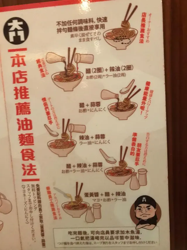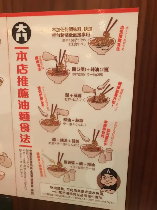 坐位旁貼有油麵的推薦食法,