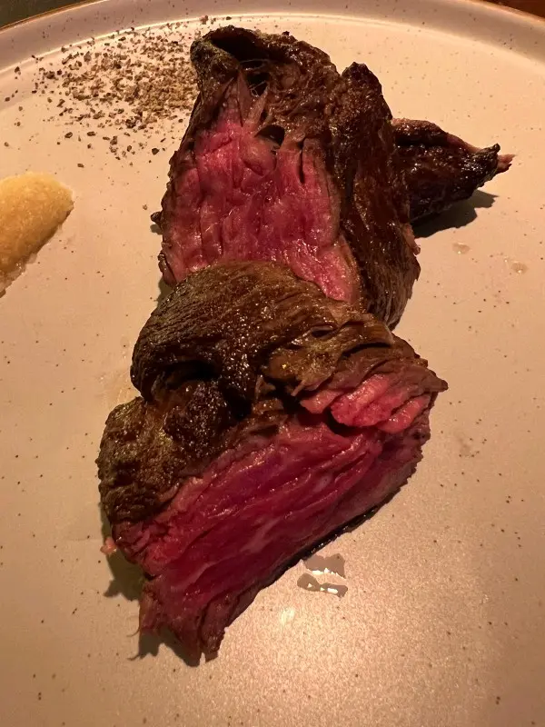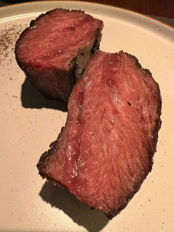 麵包配橄欖油和黑醋,簡單但有誠意,外脆內軟,作為前菜很合適。整體用餐環境舒適,服務細心,擺盤精美。每道菜都見用心,牛扒水準尤其高。無論是約會還是小型聚會,後街牛扒都是灣仔區值得一試的牛扒店。