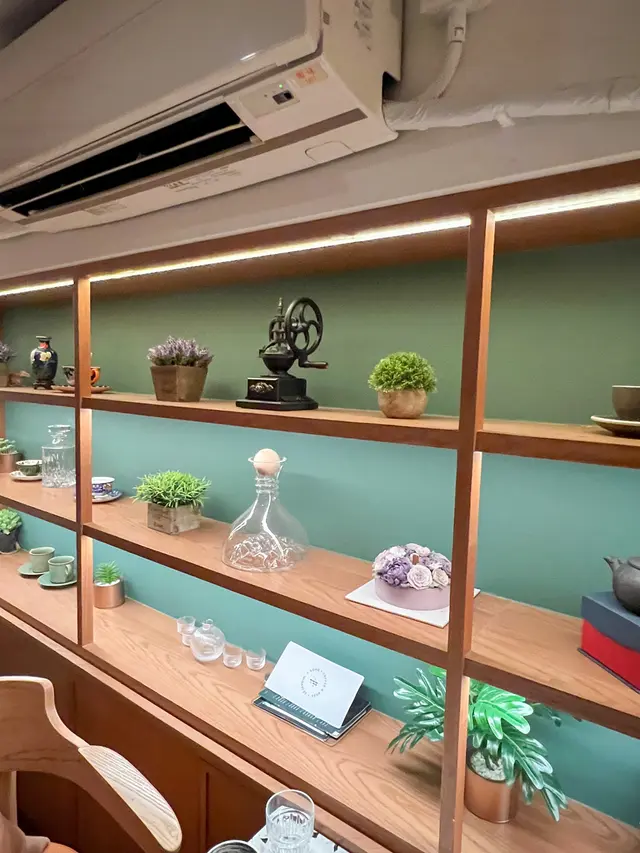 左邊牆櫃擺滿小盆栽🪴同書本擺設 氣氛立即變得悠閒優雅