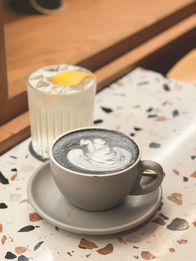 芝麻latte面層以天鵝拉花作裝飾 前段入口尚算順滑入口😙