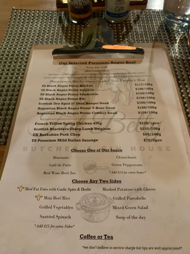 我地揀咗 US Black Angus Prime Rib eye、Argentina Black Angus Prime T-Bone Steak、UK Berkshire Pork Chop。全部都係我地親自選擇👍🏻👍🏻 叫主菜仲有兩個Side dish 送👍🏻👍🏻非常好~成班朋友每人都可以試到好多款唔到嘅嘢食!