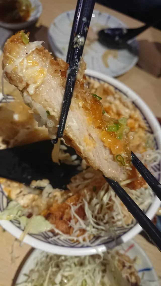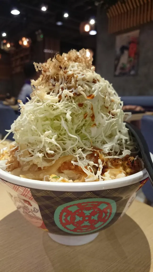 個大阪豬扒丼~超級誇張囉嗰份量~好夠大! 女仔一個一定食唔哂XD 椰菜堆到超級高成座山咁! 豬扒整得好入味, 份量非常之有誠意!