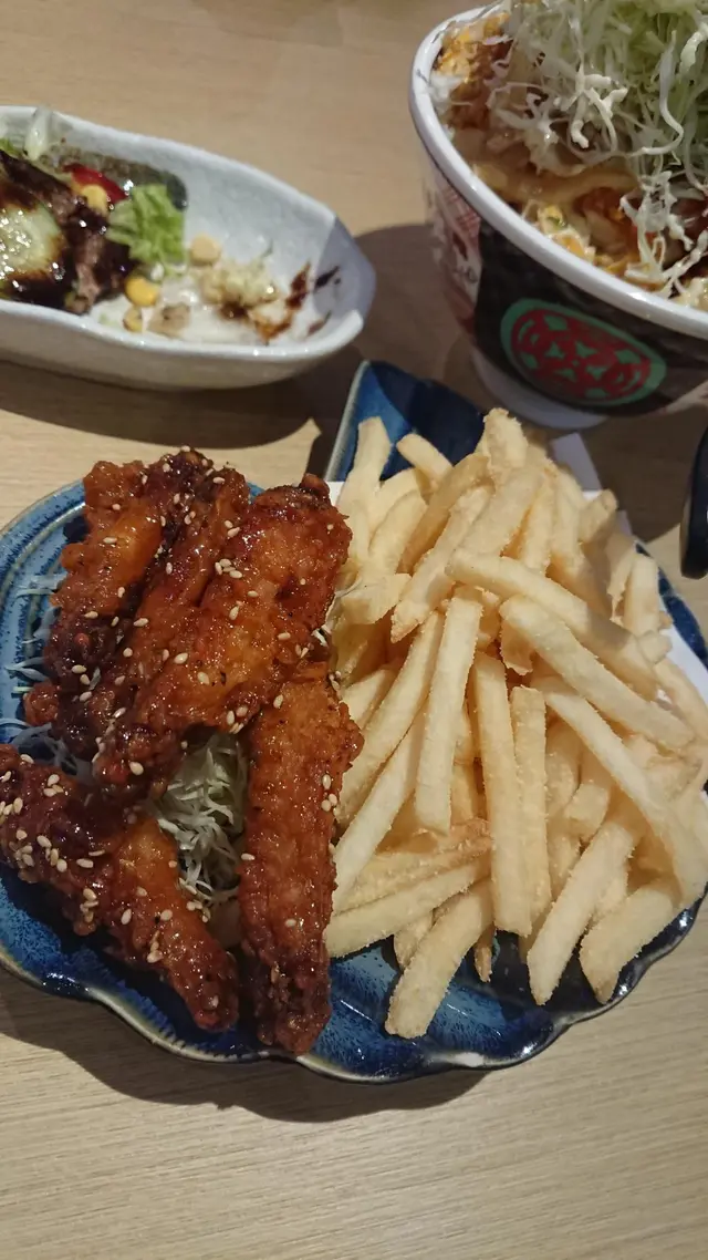 叫咗刺身~大阪豬扒丼~安格斯牛扒他他沙律配黑醋汁~帆立貝黃金燒、加埋電擊雞翼配炸薯條~~甜品仲有宇治抹茶芭菲~