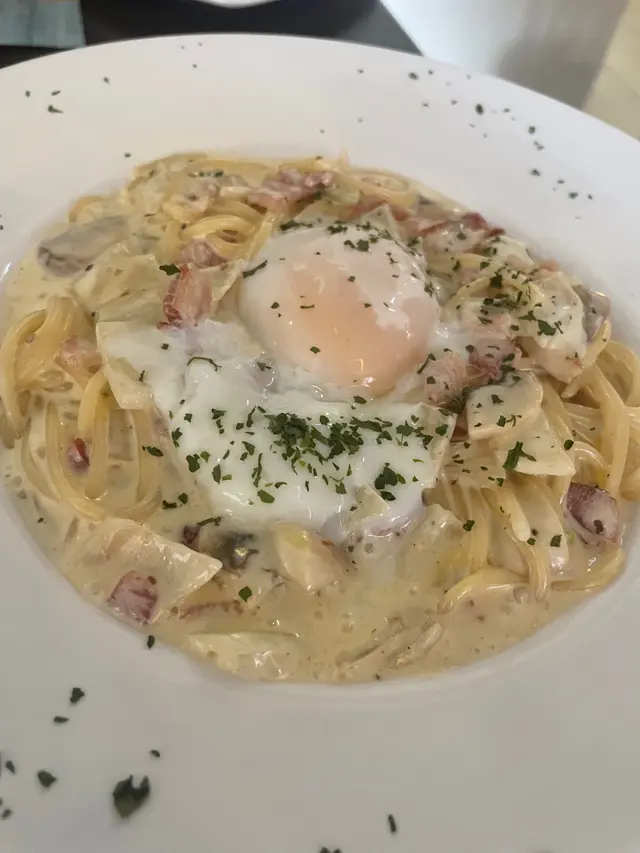 一段時間冇食意粉,呢個白汁蘑菇煙肉意粉絕對係驚喜之作,用料十足而且醬汁香濃,再配埋溫泉蛋既蛋汁一齊食,有錦上添花既效果