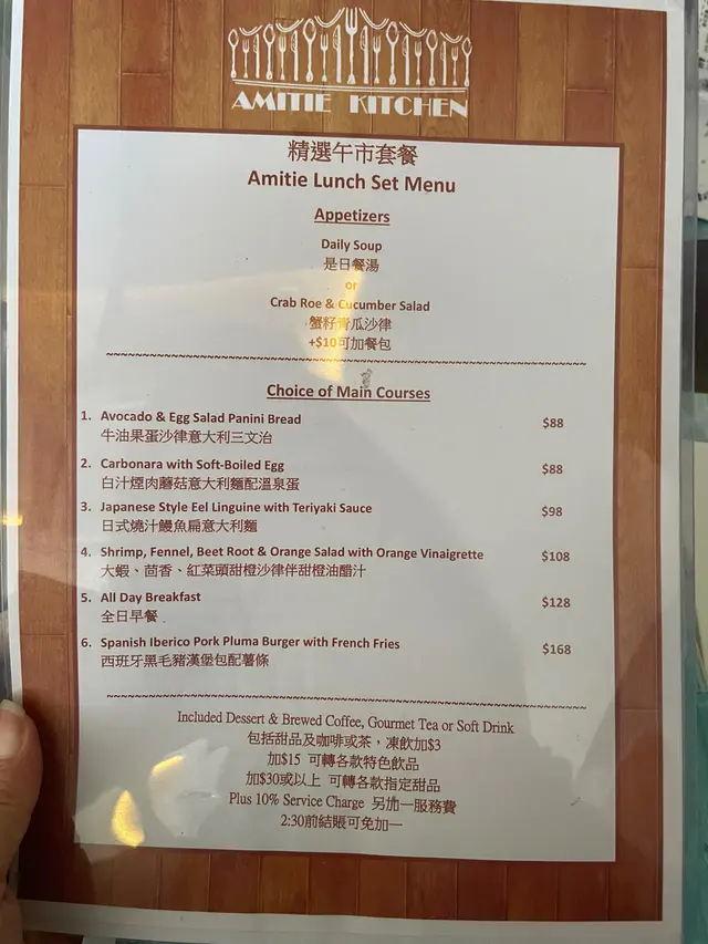 有多款lunch set 可以選擇,我就簡左個白汁煙肉蘑菇意大利麵配溫泉蛋,朋友就簡左個全日早餐