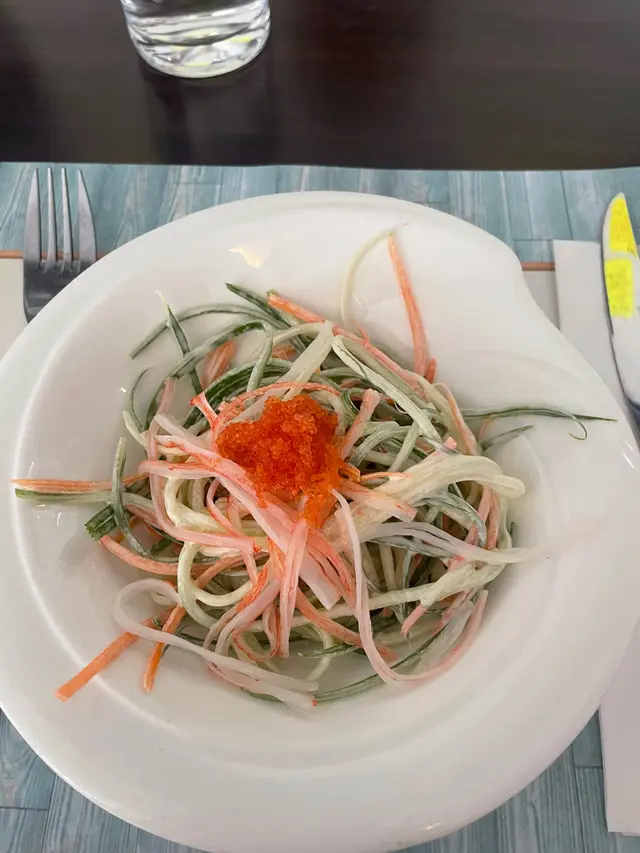 先上沙律,係十分清新既口味,好適合咁熱既天氣食,啲蟹子咬落卜卜脆好過癮