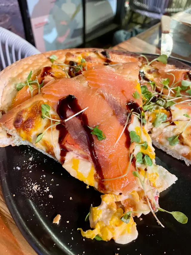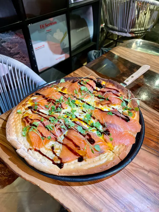 煙三文魚菠蘿千島醬薄餅。餅底酥脆,煙三文魚鮮美滑嫩,搭配甜甜的菠蘿和微酸的千島醬,味道層次豐富。