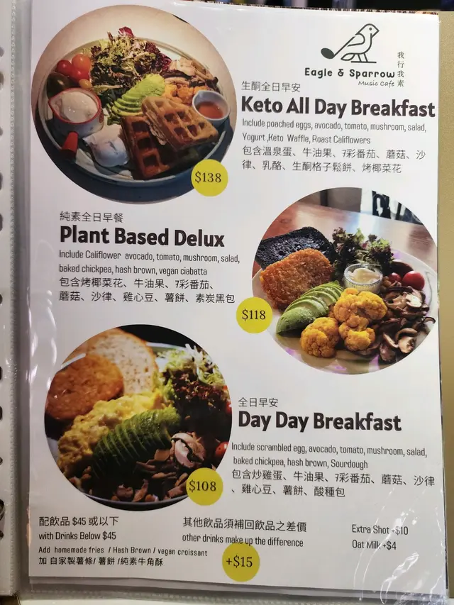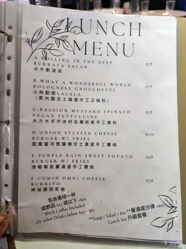 飲品方面加$20 可選擇黑咖啡一杯或$45以下的飲品: