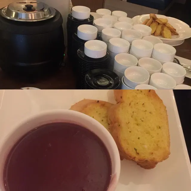 每天提供不同的餐湯同蒜蓉包都可以任食,配埋一起有加分!