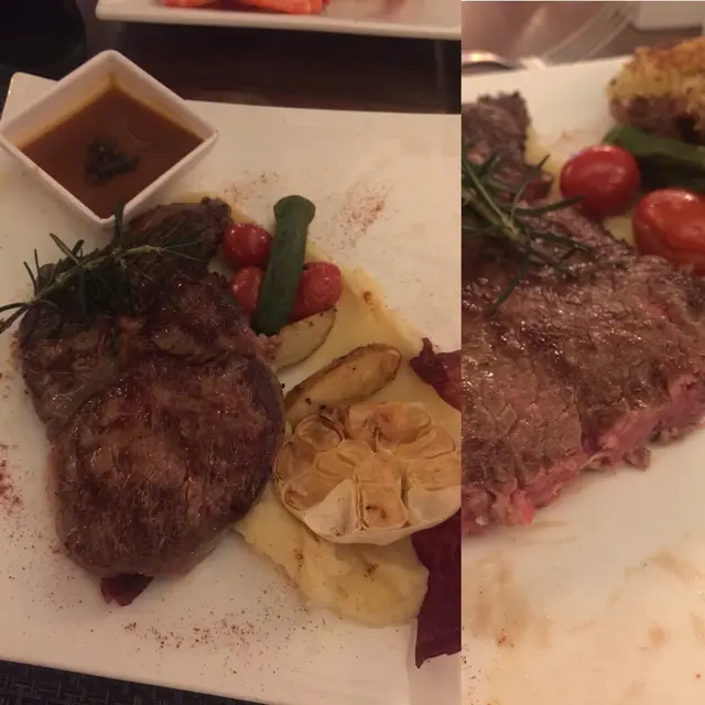 主菜揀咗 1.澳洲肉眼扒(8安士)配黑菌汁(3成熟) // 2.法式寶雲酥羊架(5成熟)