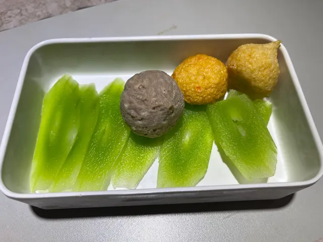 火鍋配料擺放喺雪櫃,自助形式選取,款式都多,有齊蔬菜同丸類等🍢。但由於我哋經已太飽,所以只係拎咗少少。