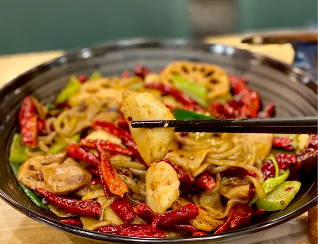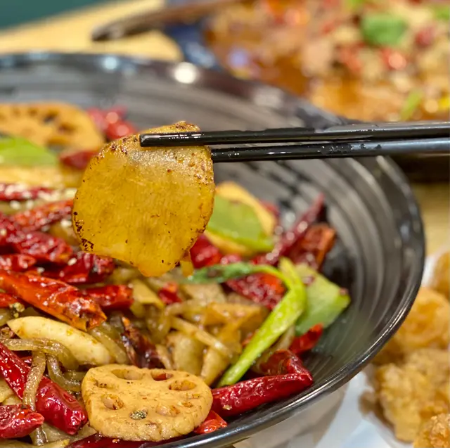 配料加了蓮藕、土豆、薯粉、墨魚餅和萵筍。辣椒如此多,看似非常辣,但點了麻辣中辣都不會太辣,而且拖過油的配料好香口。墨魚餅有驚喜,口感好彈牙而且好入味。麻辣的鹹度較低,重口味的我下次要試醬香~