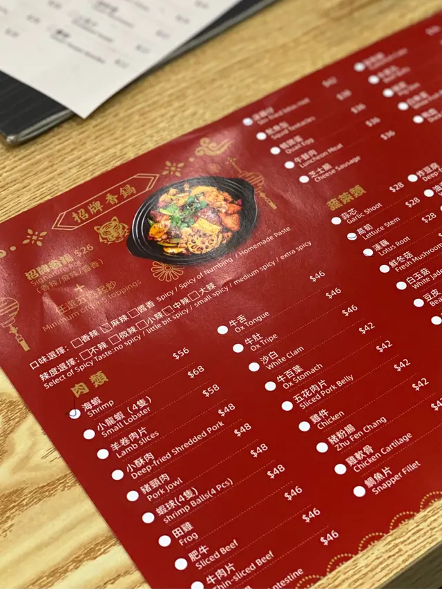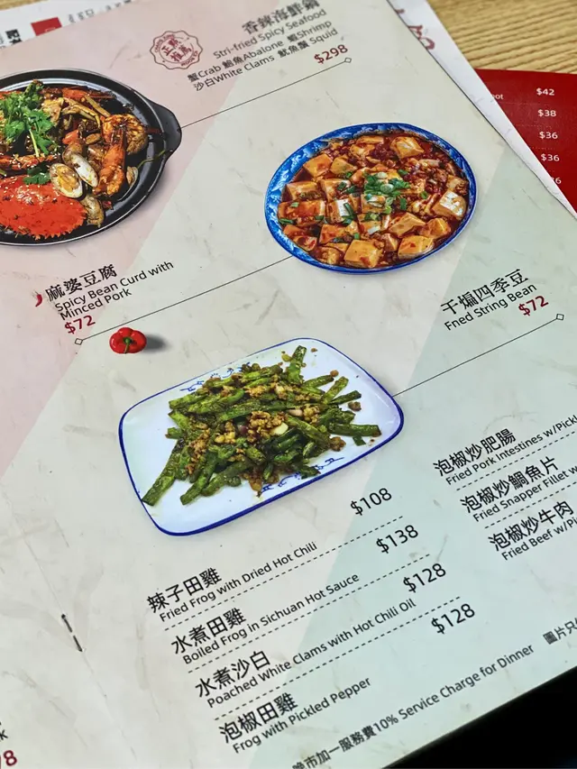首先餐廳環境乾淨,座椅舒服,而且小菜及鍋類的選擇很多,貪心的我每樣都想試,就點了一份水煮牛、一份香鍋及小菜。