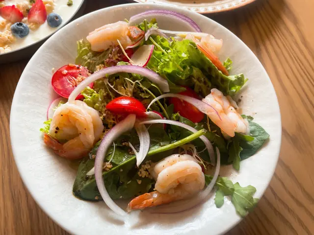 【小米鮮蝦羽衣甘藍沙拉,沙拉內放了鮮蝦,中間再放上小米!滿滿的滋味,香氣不斷,滋味無窮。冰雪雜果乳酪入面都好多水果,好清新既感覺。】