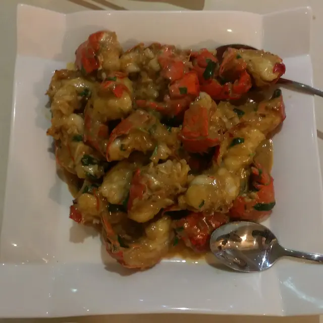 金不換炒龍蝦,金不換完全滲入龍蝦肉淡淡透出,龍蝦肉非平常吃的爽彈,而是嫩滑鮮甜剛熟,而且全碟均是肉身,沒有頭蚶腳之類“難搞”的部分。