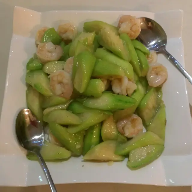 冬瓜勝瓜炒蝦球,勝瓜沒了草青味,蝦球爽鮮。