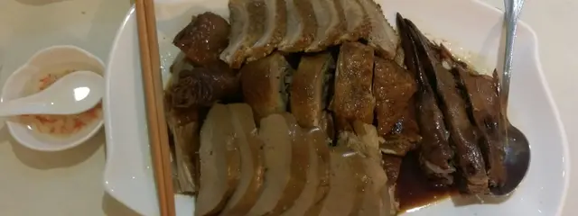 滷水鵝肝拼鵝,淡淡滷水沒搶味反而提鮮,鵝肝軟綿綿,鵝肉結實有鵝香,比經典潮州菜館金燕島更出色。
