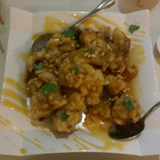黃梅醬松子魚柳,醬汁出色,比平時常吃的糖醋、五柳魚,多了一份梅的甜與酸。