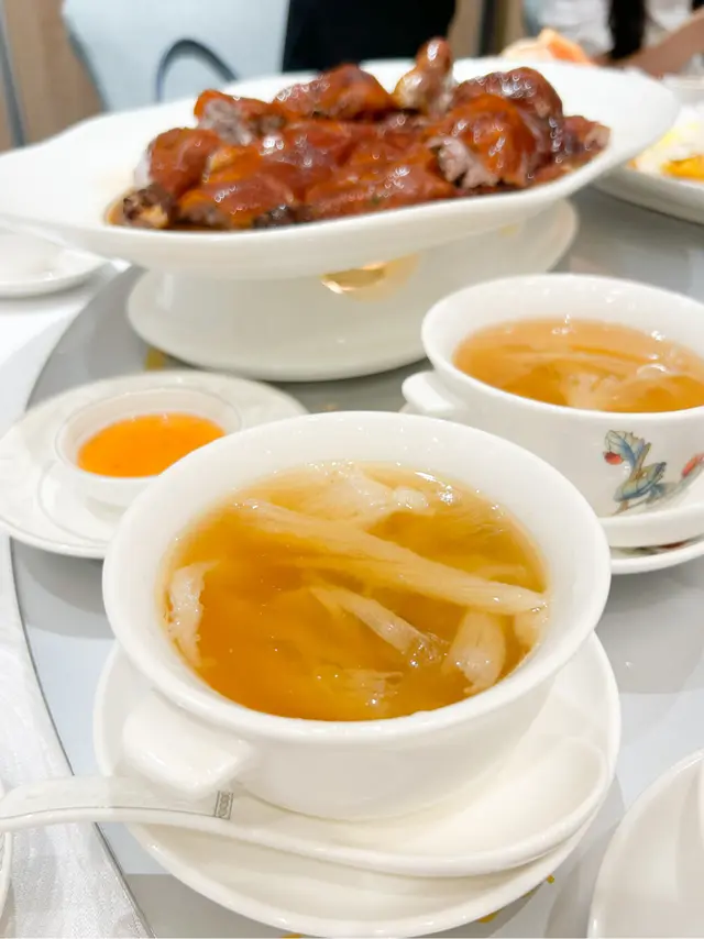 此外,我們還點了百香肉浦團,酸甜開胃,極具特色;海港薈燒鵝皇皮脆肉嫩,是地道港式味道;原盅雞燉海螺紐西蘭花膠公、原盅雞燉翅湯水濃而不膩,湯底鮮甜,花膠軟滑,養生又滋補。