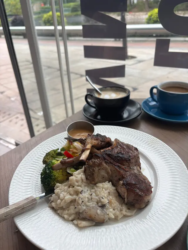 兩件羊架,煎至約五成熟,肉質粉嫩,無明顯羶味😌😌表面微焦,帶香草調味,juicy 😊😊黑松露燴飯,松露香氣濃郁,醬汁creamy但不會過膩